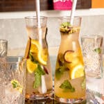 Tequila, hortelã, lima, xarope de agave e água com gás.